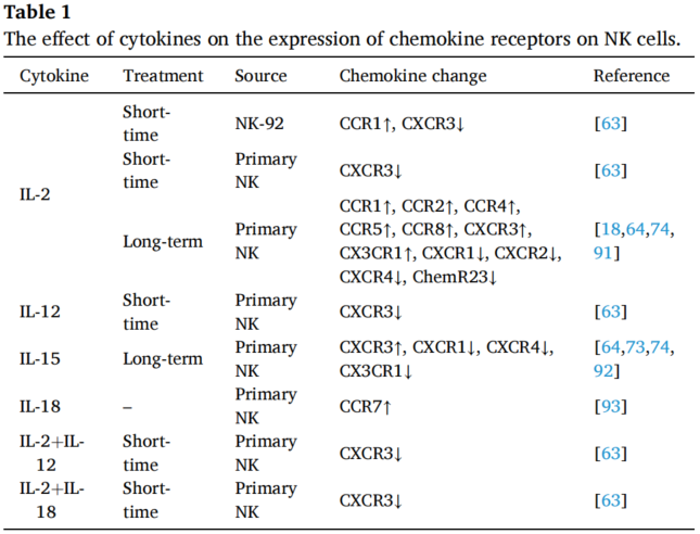 (1)细胞因子影响NK细胞表面趋化因子的表达